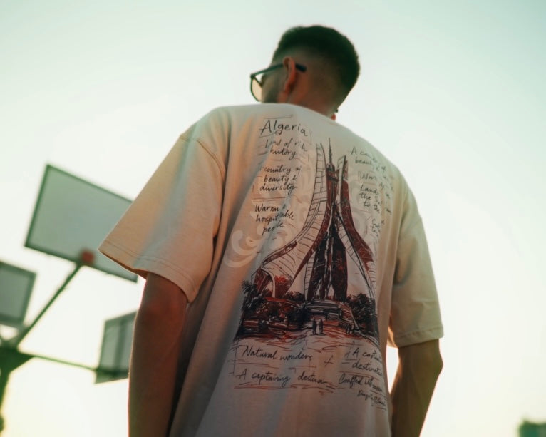 This oversized shirt incorporates elements of 200 da style, creating a sophisticated blend of marron and beige. It serves as a Powerful reminder of our heritage and the enduring spirit of Algerian culture.